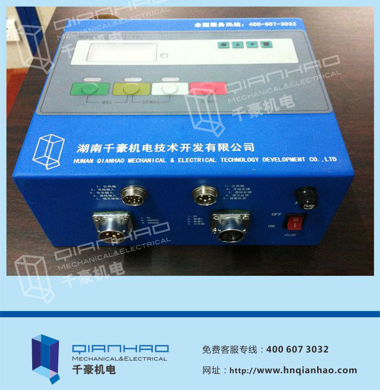 具有安全保護(hù)功能:可通過解鎖輸入觸電信號(hào)和充磁狀態(tài)輸出觸點(diǎn)實(shí)現(xiàn)聯(lián)動(dòng),設(shè)有可調(diào)的充(退)磁電流(或短路)保護(hù)與欠流(或斷路)報(bào)警功能;所有設(shè)置參數(shù)與運(yùn)行狀態(tài)均可通過主機(jī)面板實(shí)行監(jiān)控,并具有電源頻率自動(dòng)跟蹤功能;所有1-8個(gè)通道(需要更多通道可根據(jù)用戶要求定制),每個(gè)通道可按要求設(shè)置為開啟或關(guān)閉,通過退磁或消磁操作,能有效除工件表面剩磁。