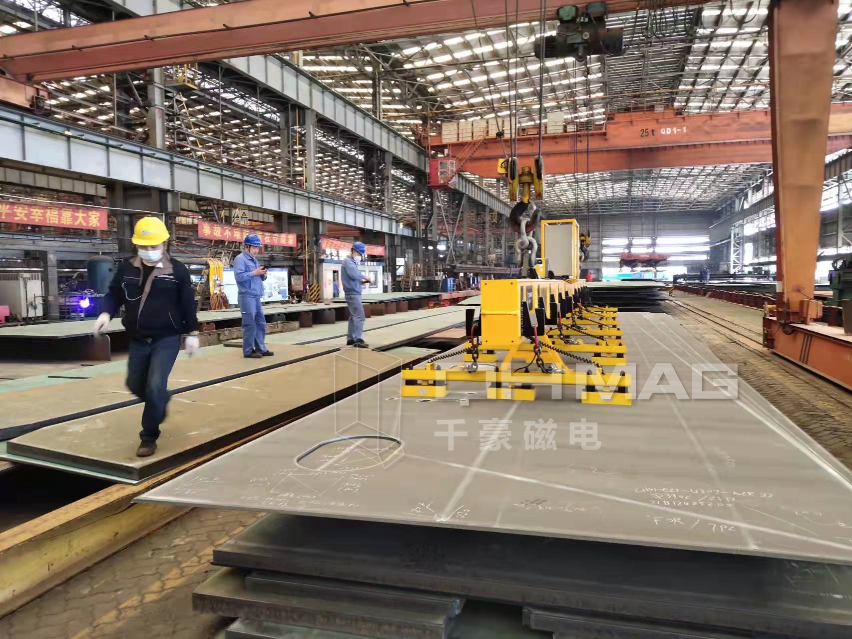 本次設(shè)計的電永磁吊具——吊鋼板,主要用于廣船國際造船用的鋼板搬運起吊,千豪設(shè)計團隊了解到現(xiàn)場需要起吊厚鋼板,薄鋼板,長度以及重量都不一,最長10米,最重達到40噸。