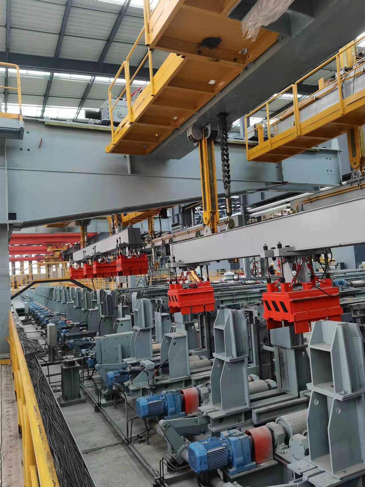 千豪技術(shù)團(tuán)隊根據(jù)現(xiàn)場工況設(shè)計的吊型材,鋼軌自動化生產(chǎn)線用電永磁鐵吊具,采用5臺電永磁鐵聯(lián)吊,最長可吊運12米長型材