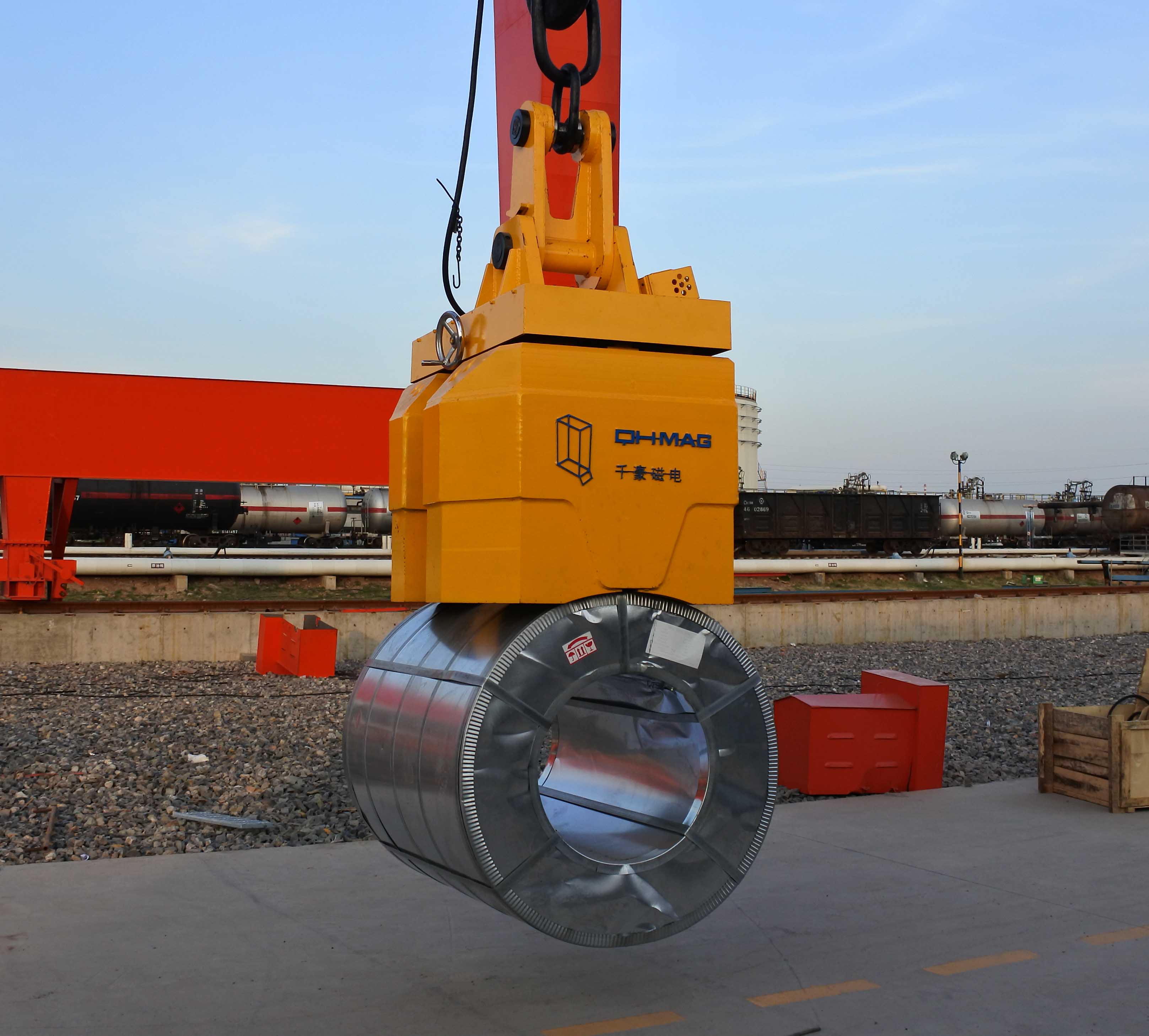 鋼帶卷起重電永磁鐵是一款專業(yè)吸吊鋼帶卷的起重電永磁鐵。電永磁鐵的磁性能完全針對鋼帶卷進(jìn)行設(shè)計,只與材料表面上部接觸,不產(chǎn)生擠壓和變形。避免的機(jī)械吊運(yùn)對鋼帶卷的損壞。