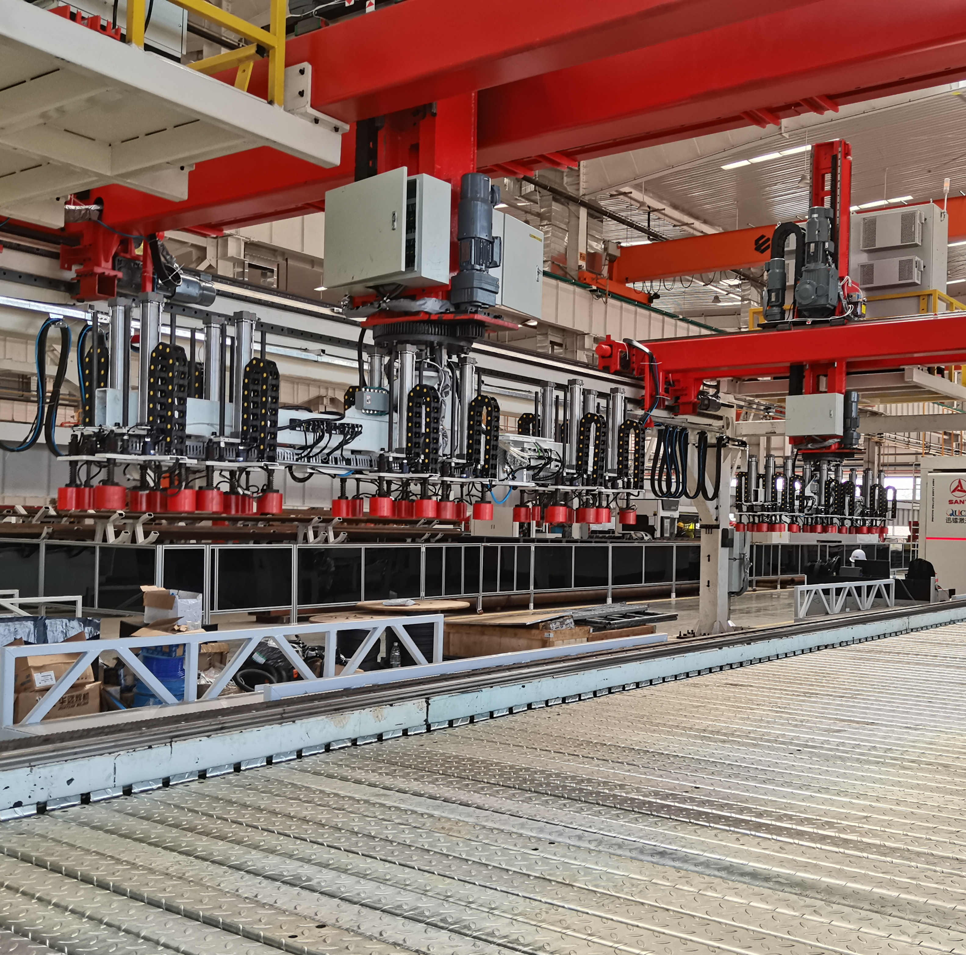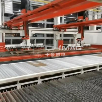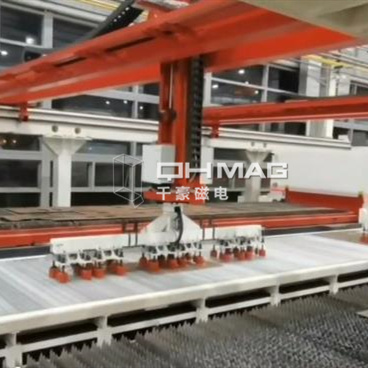 工業(yè)桁架機器人的應用使工人在規(guī)?;a過程中擺脫了單調重復的體力勞動,改善了工作環(huán)境,同時提高了產品質量,因此成為了企業(yè)自動化改造的必然選擇。桁架式工業(yè)機器人以其高可靠性、高速度、大負載、大行程、低成本等特點,在物料搬運傳輸領域有著獨特的優(yōu)勢,應用前景十分廣闊。傳統鋼結構車間采用激光切割機切割鋼板,鋼板以人工分揀為主,工人勞動強度大,生產效率低,工作環(huán)境惡劣。因此千豪為鋼板自動化分揀機器人安裝電永磁鐵,用于代替人工實現鋼板的自動分揀