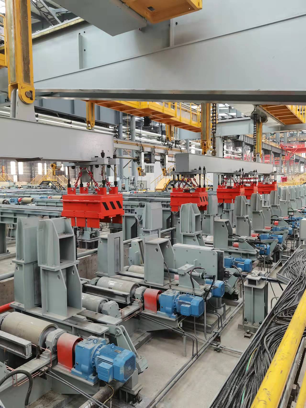根據(jù)現(xiàn)場工況,此次設(shè)計的型材,鋼軌自動化生產(chǎn)線用電永磁鐵,采用5臺聯(lián)吊,吊運6~12米長型材,鋼軌用。